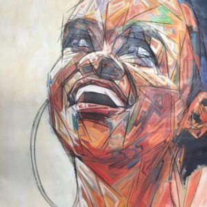 Her figurative work body is about self-acceptance, women, and other subject matters