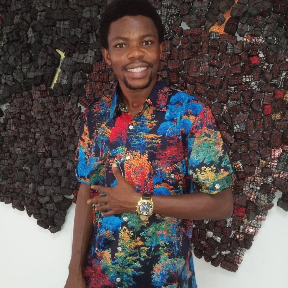 Joshua keeps exploring new materials to express his creativity. He was worked with charcoal, fabrics, and leather among other materials, reshaping and re-engineering them in unusual and creative ways that are thought-provoking. Joshua is currently enrolled in the MFA program with a focus on painting at the University of Nigeria, Nsukka.