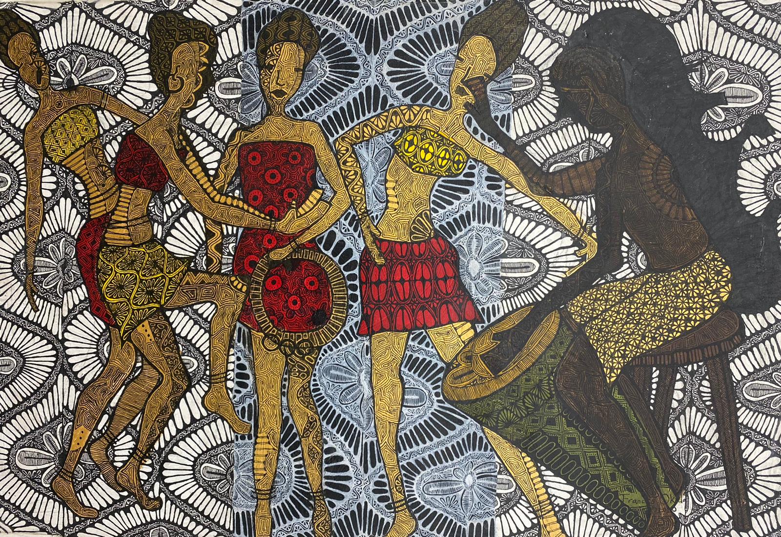 Frances Okala: Egwu (Dance), Acrylic and ink on canvas, 35 x 23 inches, 2020