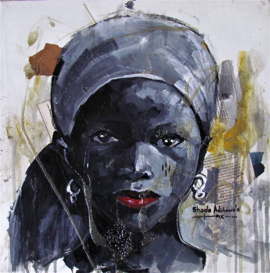Folasade Adebowale: Ibitayo, Mixed media on canvas, 16 x 16 in, 2019