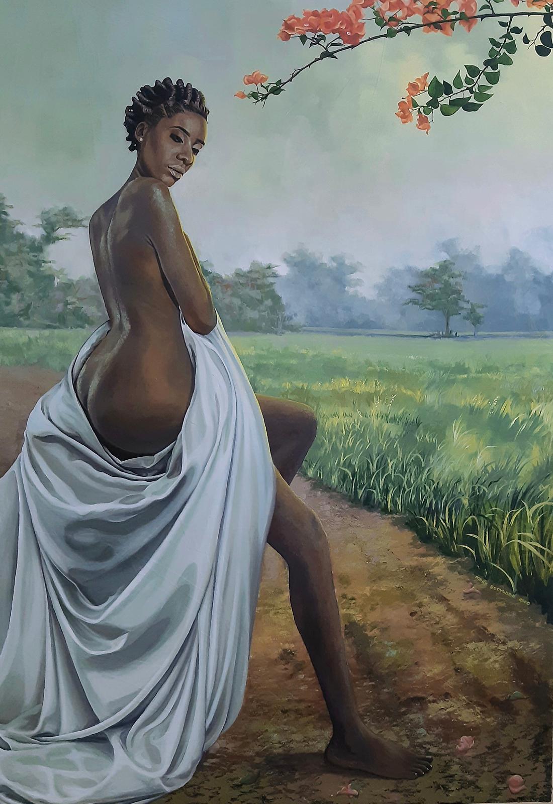 Mary Edoyugbo: INCOMPLETE READINESS, 3.5 x 5 ft, ACRYLIC ON CANVAS, 2020