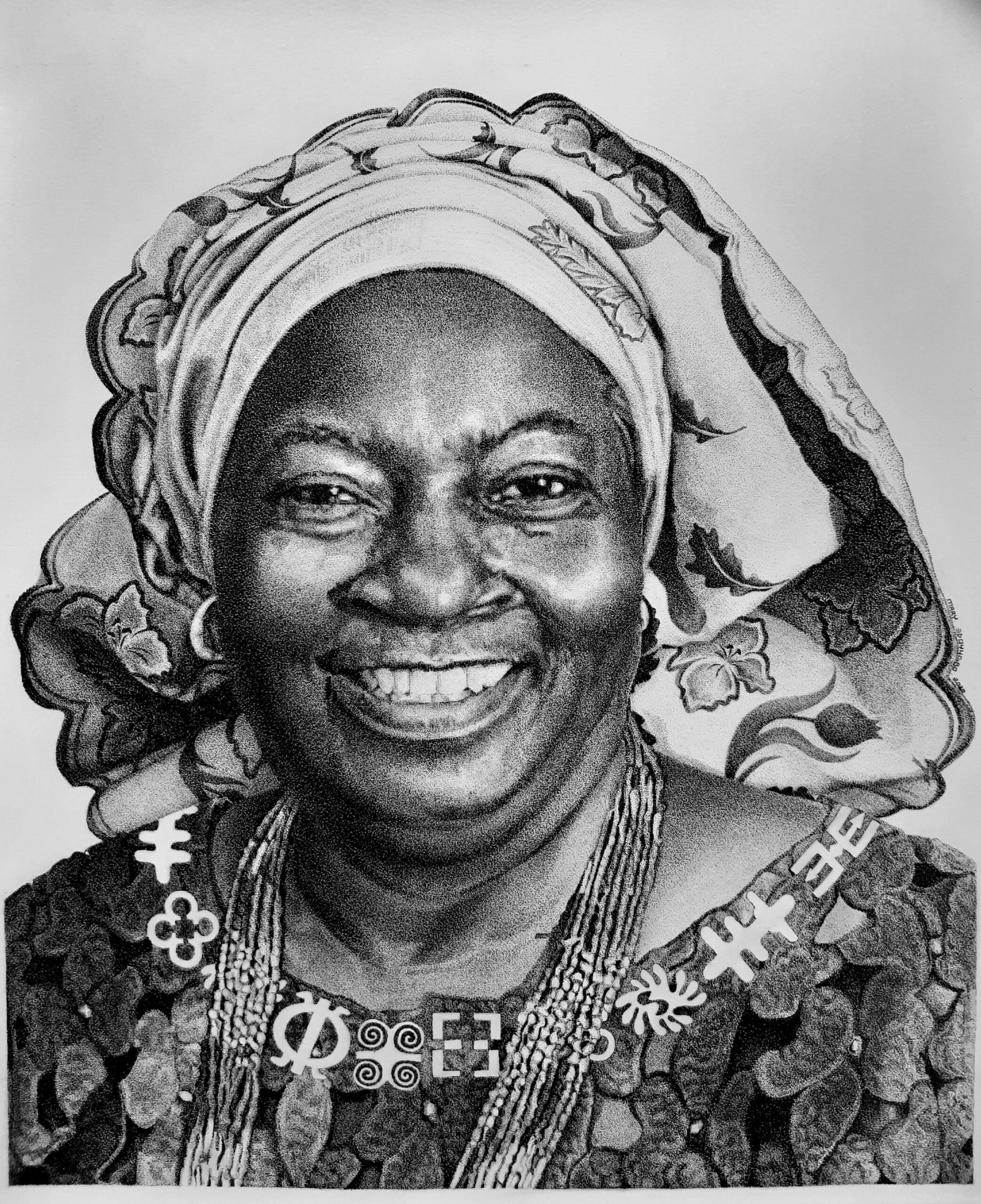 Mary Edoyugbo: OGA MADAM, 20 x 17 inches, POINTILLISM