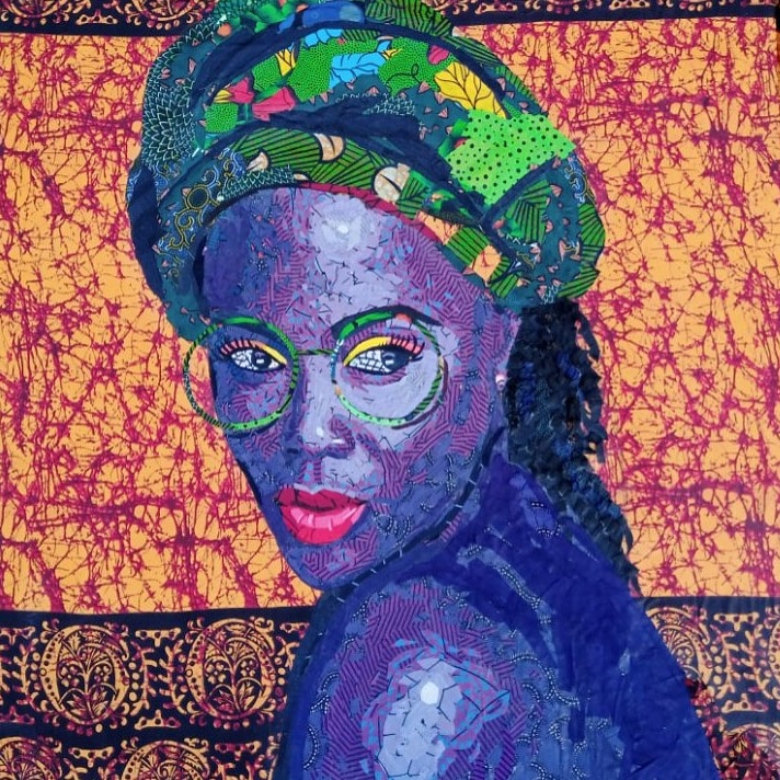 Gbonjubola Obatuyi: Sight, fabrics on canvas, 36 x 36 inches, 2020.