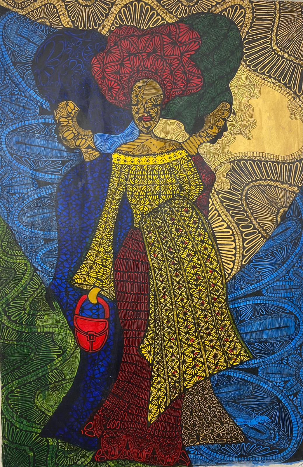 Frances Okala: Sisi Eko, Acrylic and ink on canvas, 35 x 23 inches, 2020