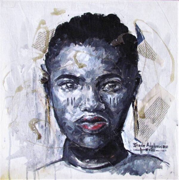 Folasade Adebowale: Solape, Mixed media on canvas, 16 x 16 in, 2018